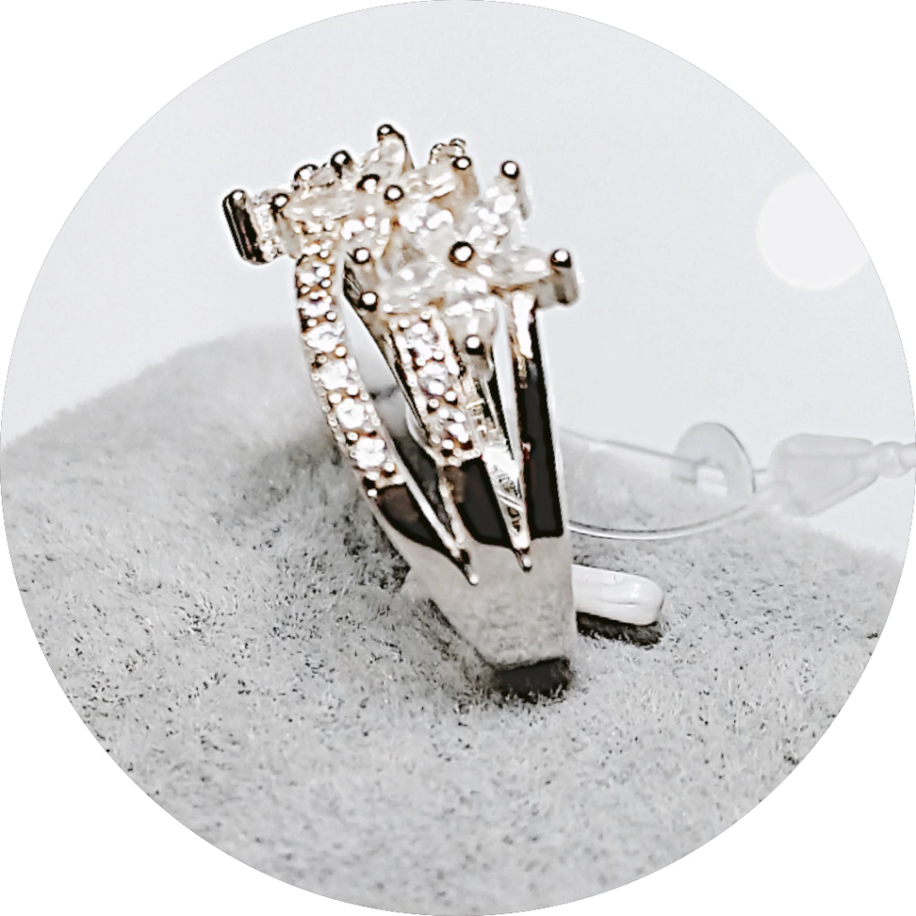 Anel de Pedra 3 Fios Cravejado 3 Flores Com Pedras - Prata Legítima