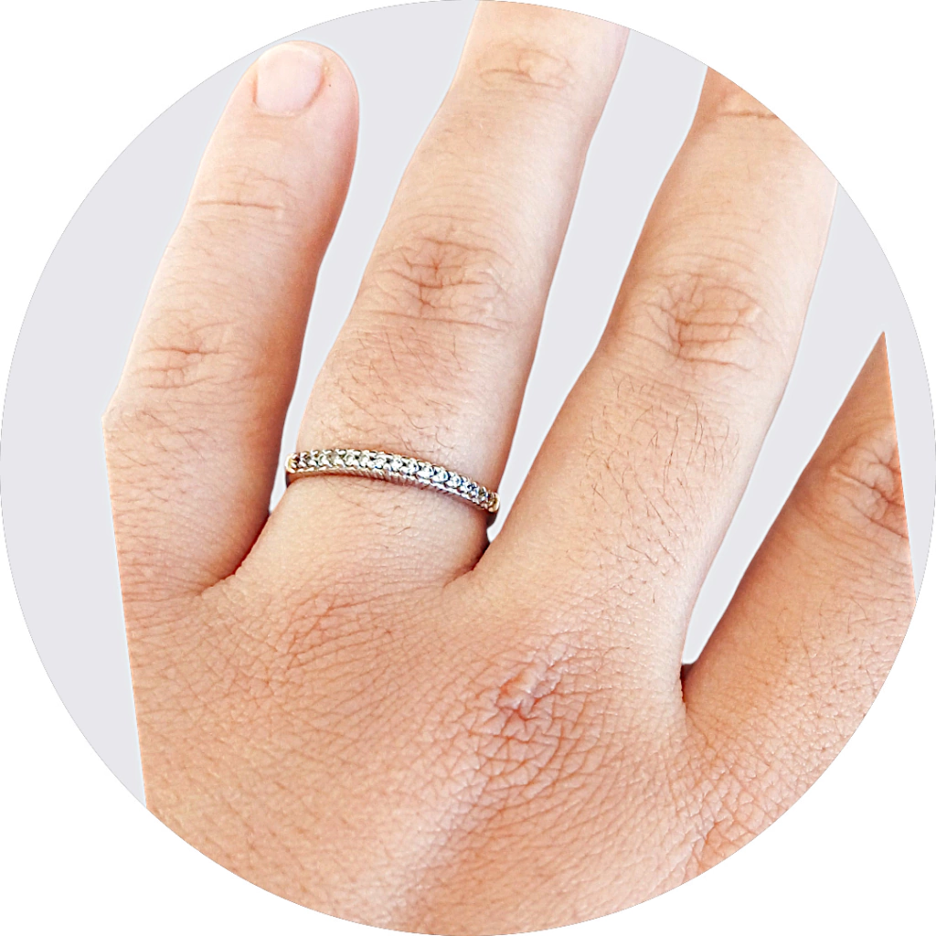 Anel em Prata Aparador Fino Metade Cravejado 2Mm - Prata Legítima