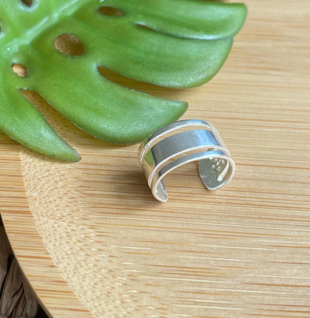 Especificações: - Material: Prata 925 - SKU: FA80RB - Modelo: Anel Ponta de dedo Regulável 3 linhas em Prata 925