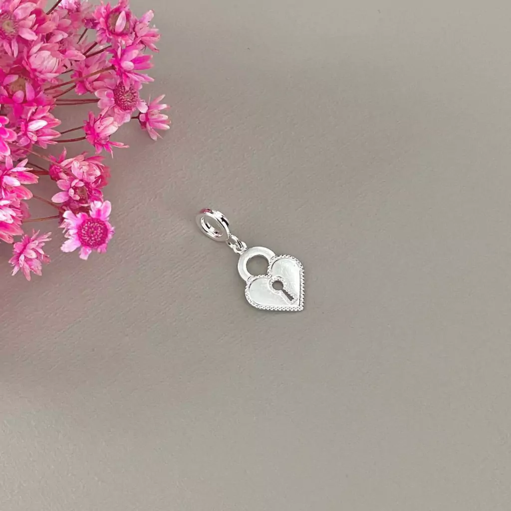 Berloque Charms Coração Cadeado Vazado - Prata 925