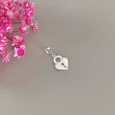 Berloque Chave Com Coração Vazado Envelhecido - Prata 925